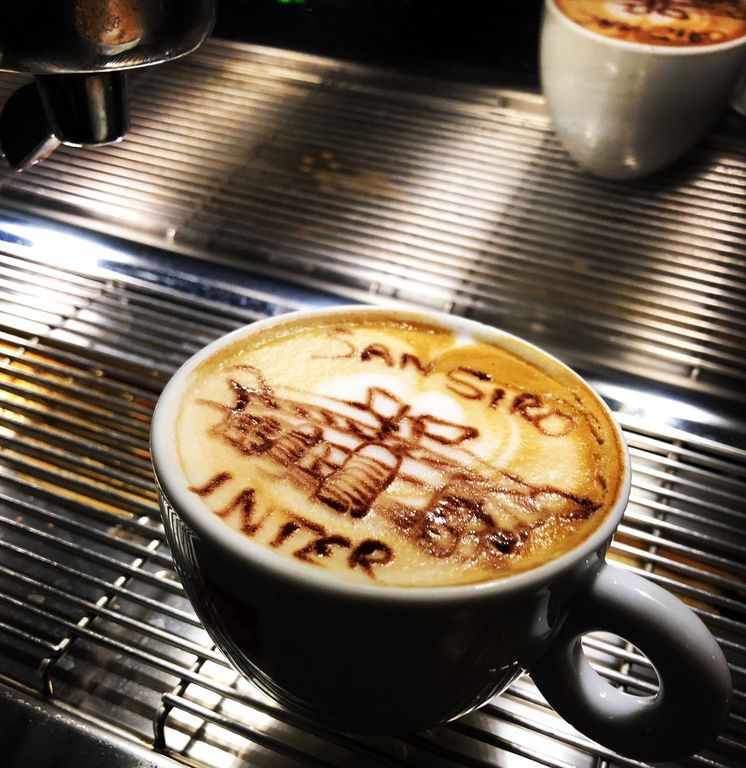 E così, in virtù di un'assidua volontà di formazione ed esperienza professionale, dalle mani di Fabio Giachino oggi escono vere e proprie decorazioni grafiche e 'macchie' artistiche che vanno a impreziosire cappuccini e caffé del 'Davit', bevande già di per sé stesse eccellenti perché realizzate, assicura Fabio, "con prodotti e macchine di alta qualità e con una tecnica semplice quanto efficace, che ovviamente qui non posso e non voglio spiegare...".