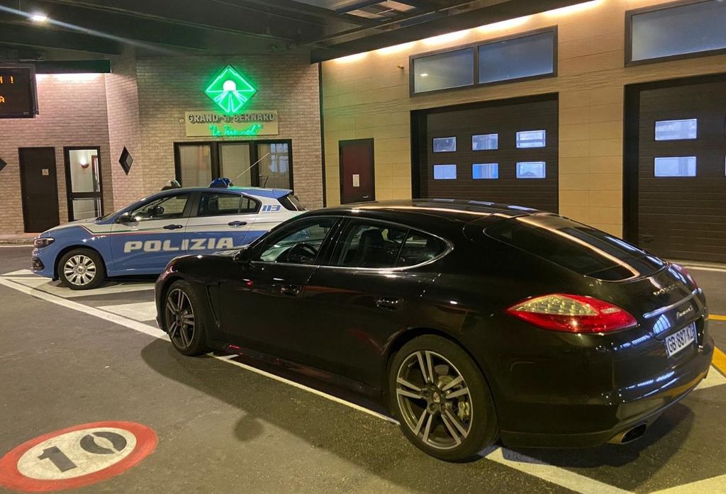 Fermato al traforo del G.S. Bernardo su una Porsche Panamera rubata