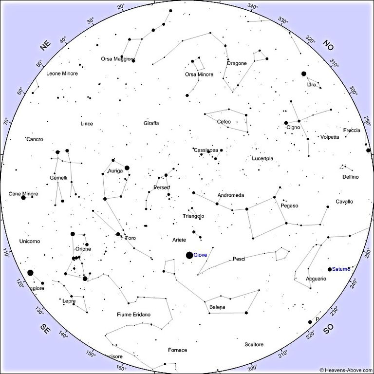Il cielo di Dicembre alle ore 21 del giorno 15.