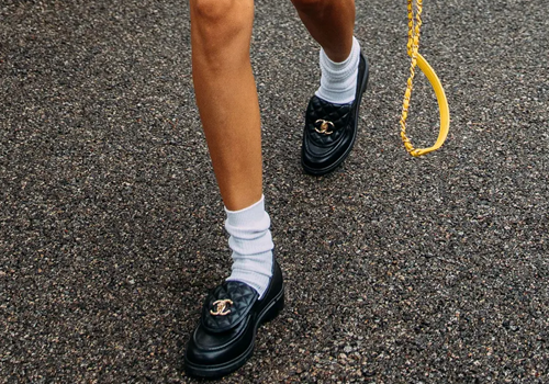 Chanel, Gucci, Prada e Miu Miu propongono mocassini classici con logo. Un marchio distintivo per chi li porta, uno stile che non ha bisogno di grandi sofisticazioni. Se vogliamo distinguerci, è sufficiente abbinare calzini bianchi a un capottino short o sotto il ginocchio e il gioco è fatto!