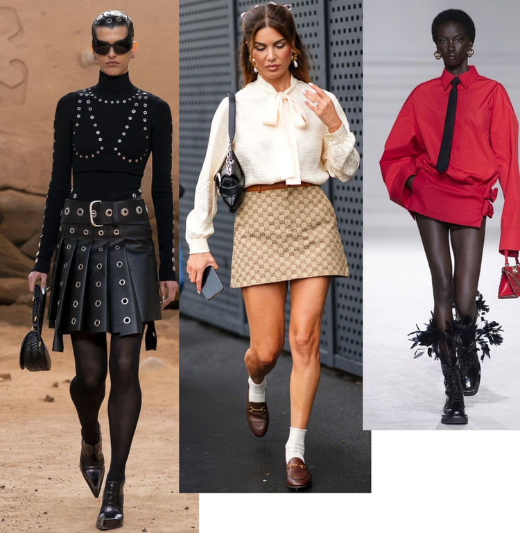 Per i prossimi mesi, le miniskirt saranno infatti corte, anzi cortissime. Ma non solo! Lo street style impone all’eleganza e al fascino femminile di un capo così sexy un abbinamento classico che si esprime con gli intramontabili mocassini. Se poi vogliamo rivoluzionare le tendenze, basta aggiungere un bel paio di calzettoni di lana pregiata e il gioco è fatto!