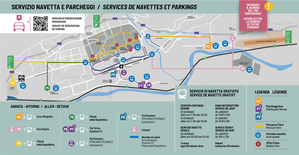 In occasione della prossima 1024esima Fiera di Sant’Orso saranno rinforzati i servizi pubblici di trasporto extraurbani, e in particolare i trasporti aggiuntivi per la da parte della società “Trenitalia” tramite pullman del gruppo “Busitalia”, con l’aggiunta di 30 mezzi oltre ai 30 già impiegati nel servizio sostitutivo dei treni.