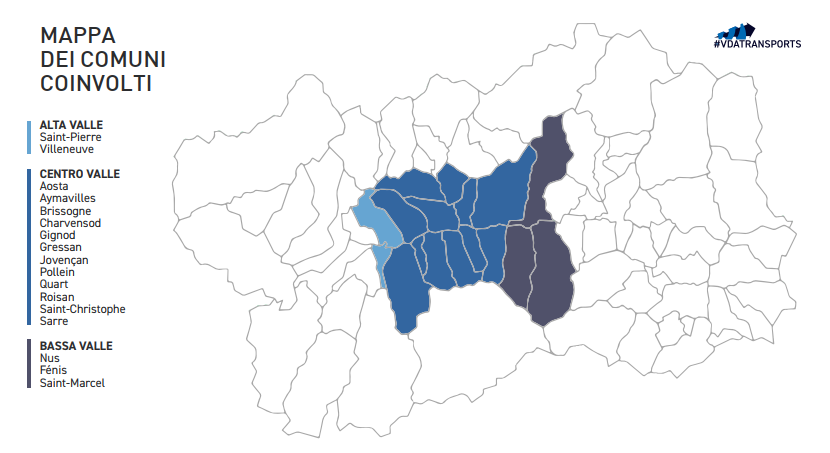 I Comuni interessati dal servizio Allô Nuit sono Aosta, Aymavilles, Brissogne, Charvensod, Gignod, Gressan, Jovençan, Pollein, Quart, Roisan, Saint-Christophe, Sarre, Nus, Fénis, Saint-Marcel, Saint Pierre e Villeneuve.