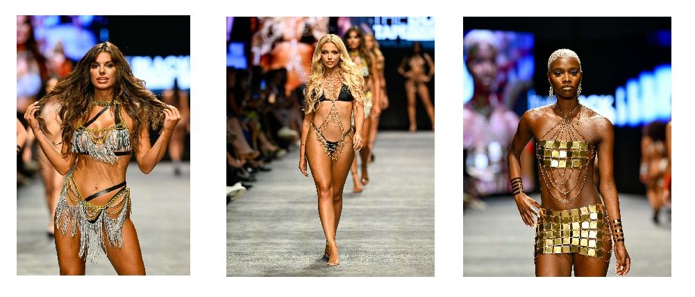 Con Black Tape Project, forme e linee dei due pezzi diventano essenziali, studiate per coprire l’indispensabile, lasciando il resto all’immaginario. È un marchio con sede a Miami che intreccia moda e arte. Interpreta in chiave moderna i costumi da bagno che non passano certamente inosservati. È una nuova forma espressiva artistica dove il corpo diventa il foglio sui cui disegni e trasparenze lasciano spazio al “vedo non vedo” impreziosito da ciondoli, catenine e plaquette color oro.
