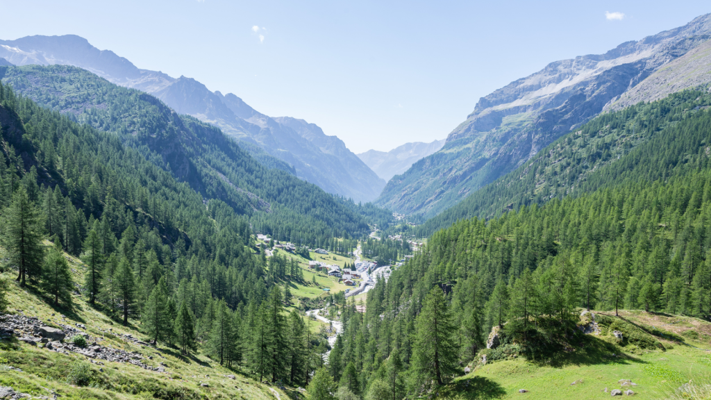 La Valle di Gressoney è un paradiso per gli amanti della natura, offrendo scenari che variano dai vigneti terrazzati ai castagneti, dai boschi di conifere alle praterie alpine, fino ai ghiacciai eterni del Monte Rosa. Il paesaggio è un mosaico di colori e forme, dove ogni angolo rivela una nuova meraviglia, come il Lago di Gover a Gressoney-Saint-Jean, uno specchio d’acqua che riflette le cime innevate e le rocce circostanti.