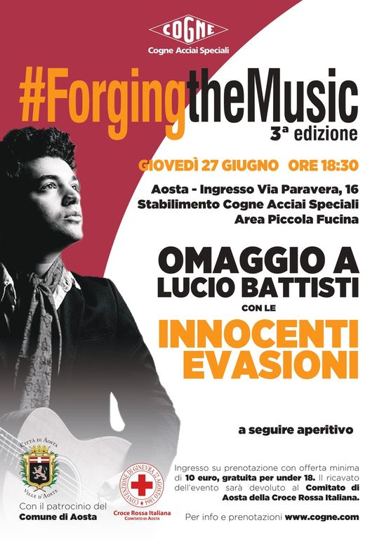 La tribute band, formata da Niccolò Chimenti (chitarra elettrica, sintetizzatori e cori), Luca Silvestri (basso), Eugenio Nardelli (batteria, percussioni), Francesco Rainero (voce, pianoforte, chitarra), ha aperto i concerti della Formula 3 di Alberto Radius (gli unici ad aver accompagnato Lucio Battisti dal vivo), alternando il palco con Francesco De Gregori, Enrico Ruggeri e Giorgia. Le Innocenti Evasioni hanno anche rappresentato Lucio Battisti nei programmi “Estate in diretta” su Rai1, e “Il più grande italiano di tutti i tempi” su Rai2. L’ingresso è a offerta libera minima di 10 euro, gratuito per chi ha meno di 18 anni. Il ricavato verrà completamente devoluto dalla Cogne Acciai Speciali al Comitato di Aosta della Croce Rossa italiana.
