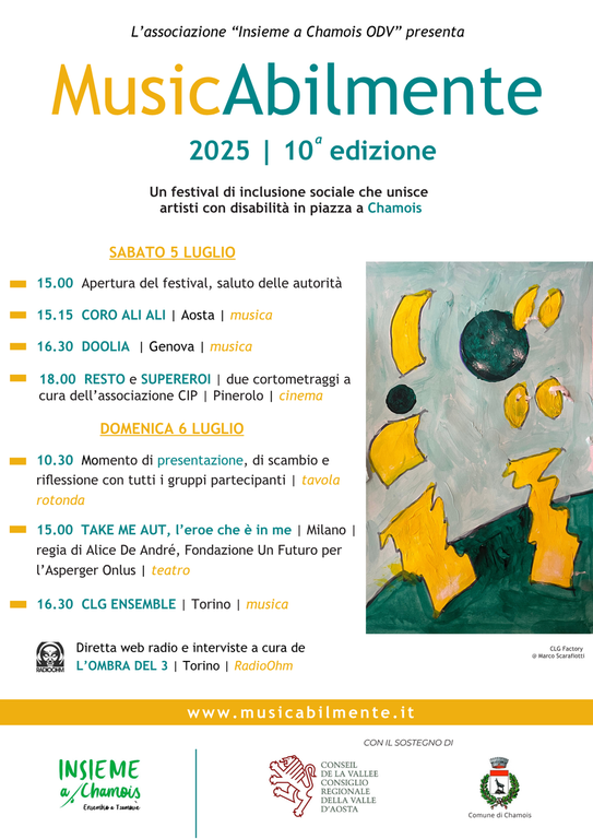 Gli artigiani lavorano lungo il percorso che dal parco giochi 'Le Château' porta alla Tornalla, la torre ottagonale simbolo del comune di Oyace: percorso che, sabato 10 agosto dalle 15 alle 17, ospita uno spettacolo teatrale itinerante della Compagnia Passepartout, creando così un fil rouge tra arti figurative e arte drammatica volto alla valorizzazione del progetto e alla scoperta del territorio.