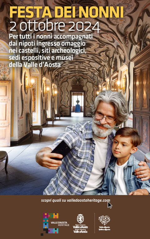 Mercoledì 2 ottobre, in occasione della Festa dei nonni, i siti archeologici di Aosta, i castelli, i musei e le sedi espositive di proprietà regionale riserveranno l'ingresso gratuito per tutti i nonni in compagnia dei nipoti.
