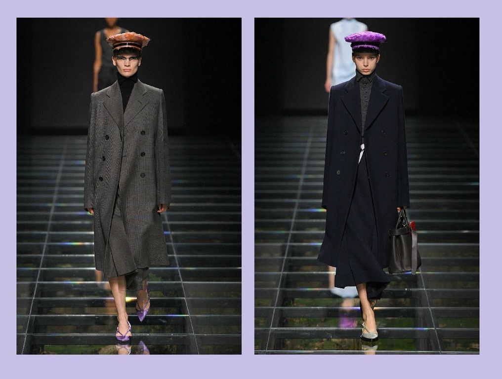 Prada punta tutto sul “perfettamente” simmetrico. Bottoni, tagli e linee richiamano il passato, in un gioco di perfetto equilibrio, anche nella scelta dei colori. Blu e nero sono le nuance scelte per la stagione invernale e i tessuti non potevano che essere caldi e avvolgenti.