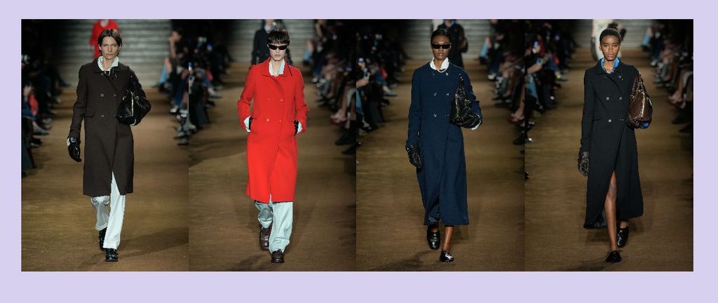 Rigore ed eleganza si trovano nelle linee di Miu che riscopre colori e tessuti del passato. Doppiopetto con spalle rinforzate e maniche extra long, questo è il cappotto va bene per ogni occasione. Per i prossimi mesi, la versione lunga continua a imperare.