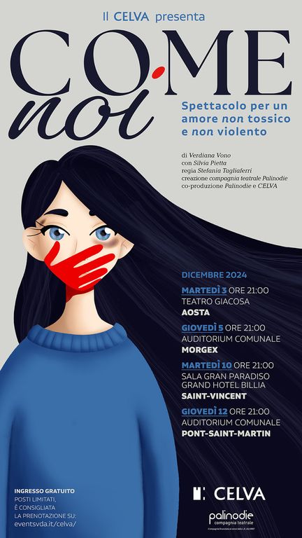 'Come noi' andrà in scena alle ore 21 di martedì 3 dicembre al Teatro Giacosa di Aosta, giovedì 5 dicembre all’Auditorium comunale di Morgex, martedì 10 dicembre al Grand Hotel Billia (Sala Gran Paradiso) e giovedì 12 dicembre all’Auditorium comunale di Pont-Saint-Martin.