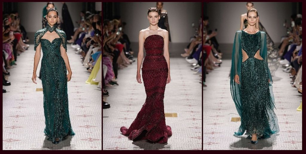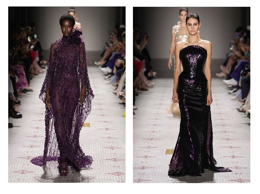 Protagonisti sono ancora i colori. Si passa dall’oro e argento, simboli di potere e ricchezza, al verde petrolio e viola melanzana, cromie invernali tornate alla ribalta per stupire e rompere col passato.