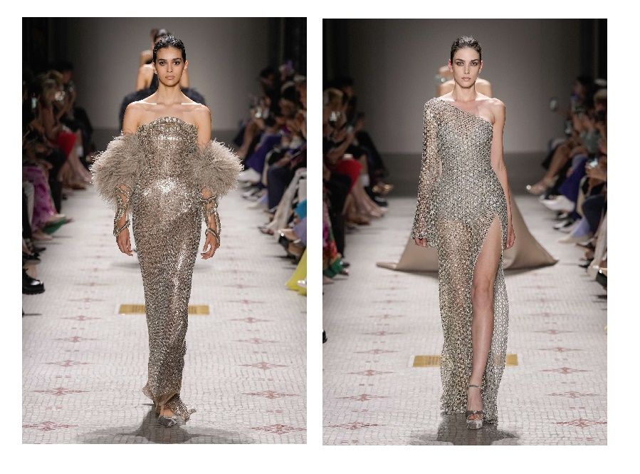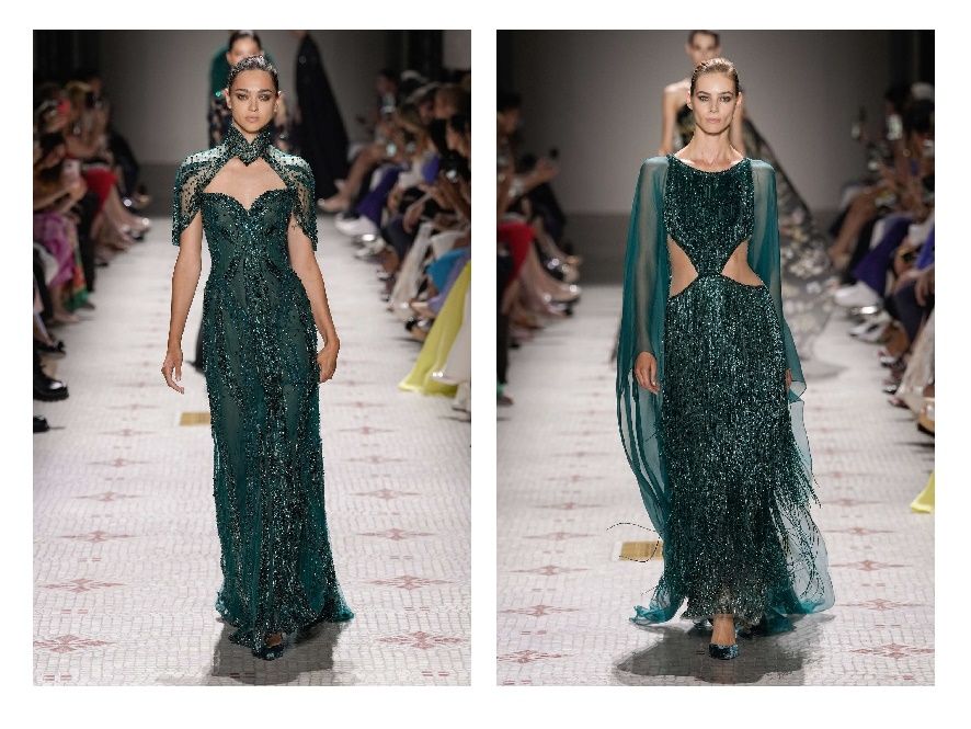 Per la festa più lunga dell’anno, Elie Saab posa sulla silhouette femminile volumi sottili, materiali elaborati e dettagli decorati. Le frange lunghe e audaci ondeggiano sulle maniche, creando un movimento dal sapore country. La sua donna, forte e gentile, riflette uno spirito energico per un inizio d’anno all’insegna di grandi successi.