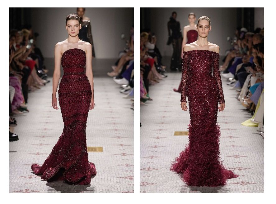 Non poteva poi mancare la palette d’onore: il rosso che, per Elie Saab, diventa quasi bordeaux (per gli appassionati di vino, direi “color barolo”). Nuance di buon auspicio e fortuna - secondo un’antica usanza cinese - è in grado di scacciare il demone mangiauomini, mentre per l’antica tradizione di Roma diventa simbolo di potere, fertilità, salute e ricchezza, oltre che di buona sorte.