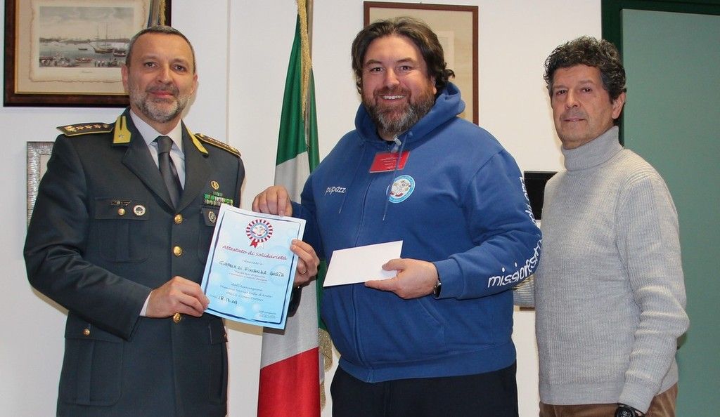 A consegnare al vicepresidente dell'Associazione, Maurizio Nicolotti e al componente del direttivo Piercarlo Lunardi la somma raccolta tra i militari della Guardia di finanza è stato il comandante territoriale, colonnello Nicola Bia.