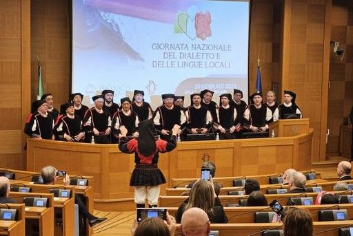 Avrebbe potuto benissimo essere quella del Coro di Sant'Orso di Aosta - che però in questi giorni ha accompagnato l'ultimo viaggio del compagno di canto Ferruccio Rosset - ma è stata l'esibizione del celebre coro polifonico sardo 'Su Nugoresu', da oltre trent'anni attivo nella promozione nazionale e internazionale della tradizione musicale della Sardegna, ad aprire oggi la cerimonia ufficiale alla Camera dei deputati che dà il via alle celebrazioni per la tredicesima edizione della Giornata nazionale del Dialetto e delle Lingue locali, che ricorrerà domani, venerdì 17 gennaio.