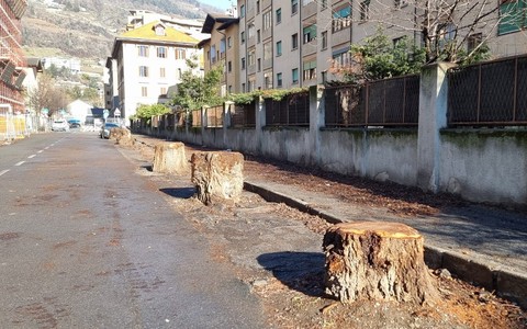 Aosta, rimosse le auto schiacciate dagli olmi caduti in via Pollio Salimbeni
