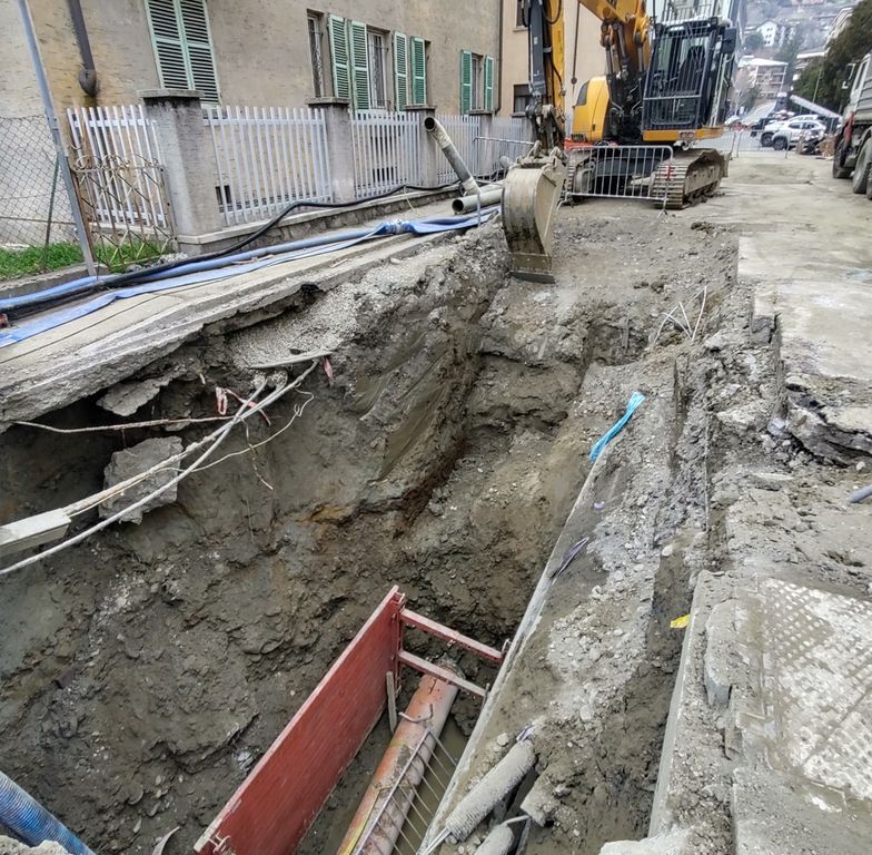 Nella giornata di lunedì, poi, è previsto il completamento della video-ispezione della linea tramite robot, finalizzata a restituire l’esatta situazione del resto della rete che corre sotto la strada tra i cinque e i sei metri di profondità.