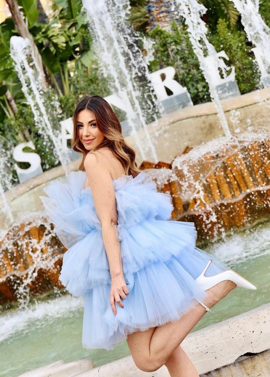 Fabio prosegue: “Valentina Spanu ha celebrato invece le mie collezioni,“Rebirth” e “Cosmopolitan Goddess” dove il fil rouge, che si ritrova in ogni abito che ha indossato, è la leggerezza. Tulle e pizzi hanno avvolto la bellezza della presentatrice, rendendola ancora più romantica ed elegante.”