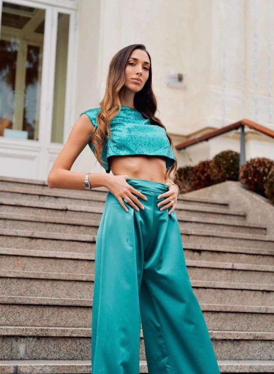Anche Manila Boff, ex volto di Uomini e Donne, oggi showgirl, ha indossato un abito dello stilista valdostano per una serata di Gala, durante la settimana Sanremese.