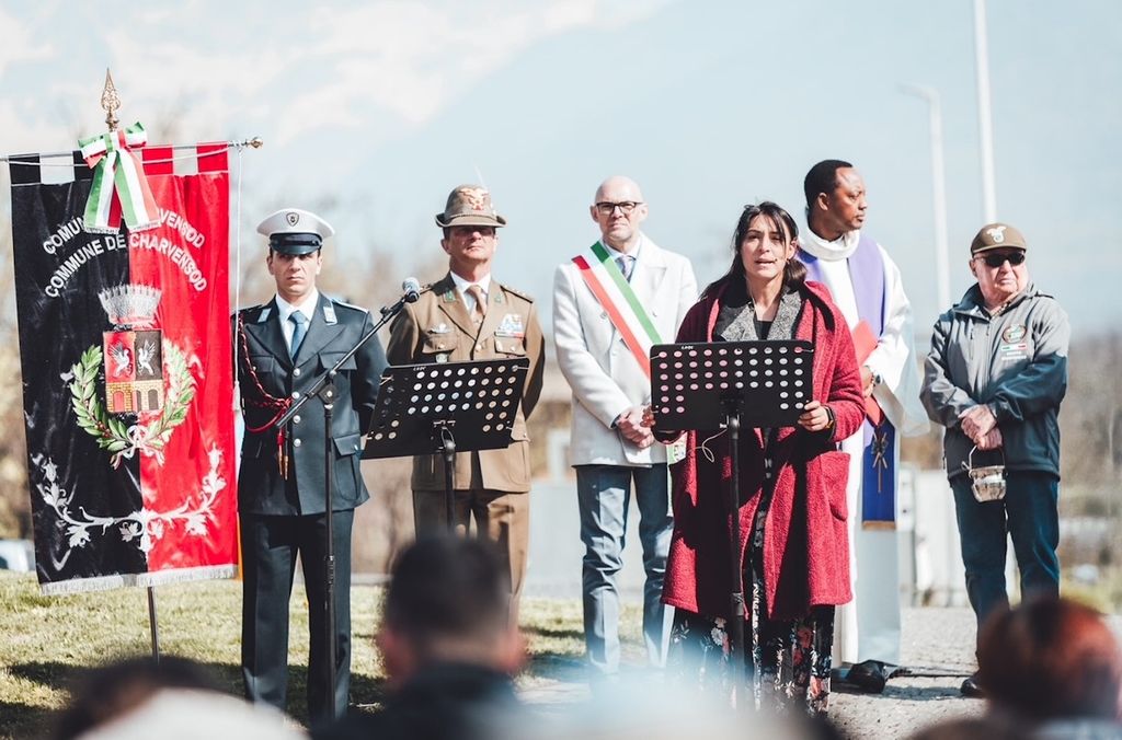 Dopo la deposizione di una corona e la benedizione da parte del parroco di Charvensod e Pollein, don Jean Claude Bizindavyi, l’attrice Silvia Pietta della compagnia teatrale Palinodie ha letto due brani, scritti da Verdiana Vono della stessa compagnia teatrale, ispirati dai documenti dell’archivio storico dell’Anpi e dal fumetto 'Il coraggio di vivere' di Alessio Fermanelli dedicato alla vita e alla morte di Guido Saba e di Yves Pellissier, Louis Vazier e Joseph Donzel, Caduti di Charvensod uccisi dai fascisti.