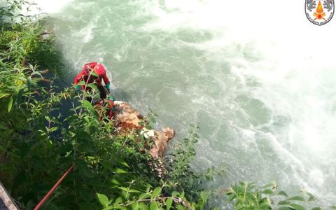 Bovino cade e muore nell'Evançon, recupero dei Vigili del fuoco