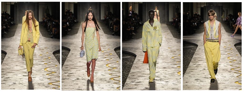 Elegante di giorno e sofisticato di sera è il giallo burro che si adatta a ogni occasione. Per Versace è un gioco di colore sia per il mondo femminile che maschile. Lo stile egocentrico che ha sempre contraddistinto la Maison lascia posto alla sobrietà. Abbandonati l’oro e i forti contrasti cromatici, l’estate diventa un’escalation di leggerezza e luce. Nuance luminosa, più soft del giallo limone e più caldo del bianco crema, il butter yellow è la giusta tonalità per un outfit contemporaneo con un tocco di originalità.