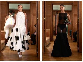 L’intramontabile black&white è stato scelto da Jacquemus anche per la bella stagione. Il bon ton si palesa in chiaro e scuro, un contrasto e un dualismo cromatico a cui non si può proprio rinunciare. Outfit bianco e nero, linee morbide e asimmetriche, trasparenze e dettagli leggeri come piumini sono le proposte eleganti da sogno dello stilista francese.