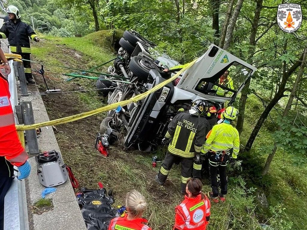 I soccorritori sono intervenuti con il gruppo taglio per consentire l’estrazione del conducente dalle lamiere del mezzo; successivamente il ferito, che ha riportato traumi, è stato affidato al personale sanitario del 118 e trasportato in elicottero all’ospedale 'Parini' di Aosta. Le sue condizioni non sono al momento note. Le operazioni di messa in sicurezza dell’area sono tuttora in corso; le cause dell’incidente sono in fase di accertamento.