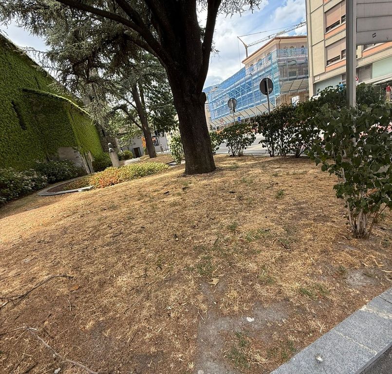 Non piove da settimane, è vero. Ma è proprio in queste situazioni che si misura la capacità di intervento di un'Amministrazione comunale. E invece prati e aiuole ad Aosta appaiono rinsecchiti, senza irrigazione né cure. Alcune zone oggi sono ridotte a distese giallastre di erba bruciata.