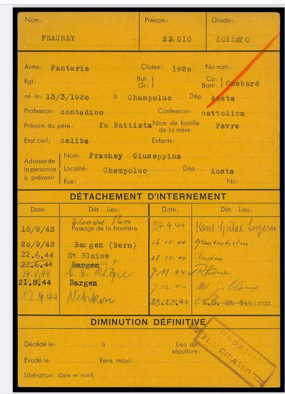 “Lo facciamo per tenere viva la memoria di chi, in un tempo di terrore, seppe rischiare la propria vita per salvare altre vite, opponendosi alla logica della persecuzione e della violenza”, spiegano i promotori. La ricerca storica avviata da 'Ripartire dalle Cime Bianche' sta dando primi, promettenti risultati. Presso l’Archivio Federale Svizzero di Berna sono emerse numerose schede relative ai passaggi attraverso il Teodulo. Tra queste, quelle dei fratelli e Guide alpine Luigi e Biagio Frachey (in home e qui le foto delle schede) costretti a riparare in Svizzera dopo che la loro attività di supporto ai fuggiaschi era stata scoperta.