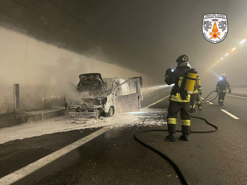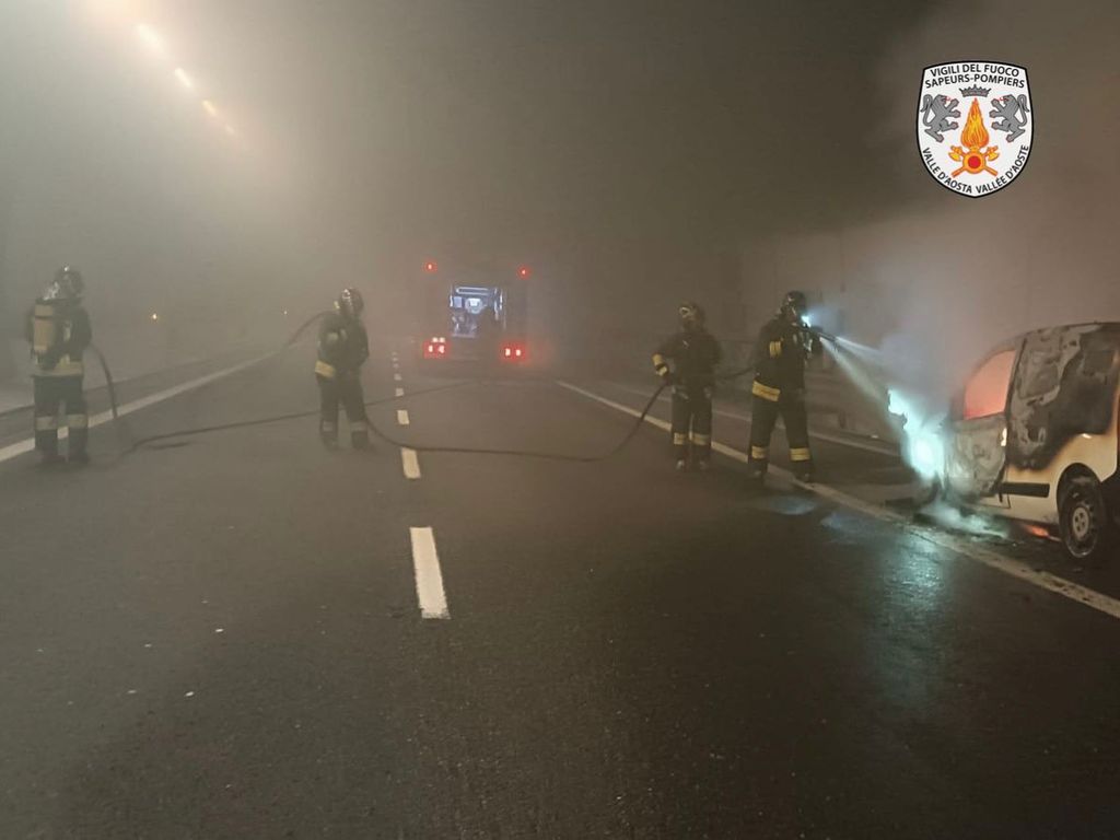 Vigili del fuoco impegnati questa mattina sull’autostrada A5, in direzione Monte Bianco, dove un furgone ha preso fuoco all’interno della galleria Leverogne-Avise.