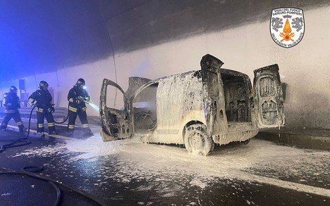 Auto in fiamme in galleria sull’A5 verso il Bianco