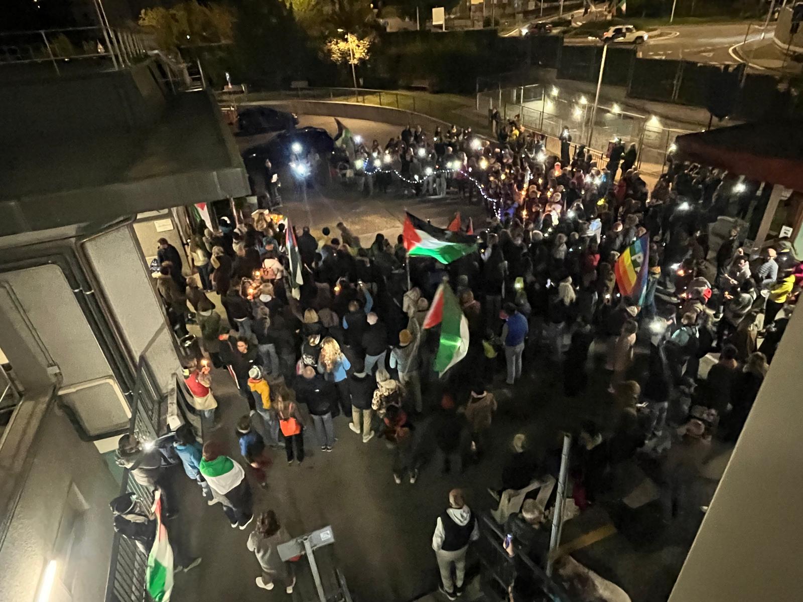 L’iniziativa, promossa dalla Rete Internazionale Global Sumud Flotilla, ha trasformato l’ingresso del nosocomio valdostano in un luogo di raccoglimento e testimonianza: i partecipanti hanno acceso luci elettriche e candele, mentre sono state ricordate le migliaia di vittime civili del genocidio in Palestina e venivano letti i nomi dei medici e degli infermieri uccisi negli ultimi mesi nei bombardamenti su Gaza.