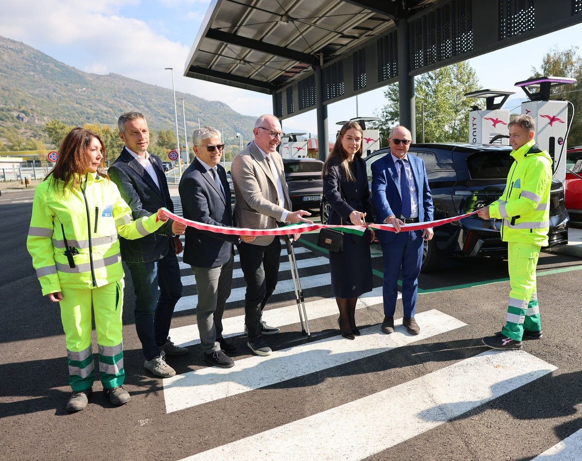 L’iniziativa è stata presentata come un passo decisivo verso la decarbonizzazione del traffico e l’ammodernamento della rete autostradale valdostana. Alla cerimonia di inaugurazione (foto sotto) erano presenti il Presidente della Giunta, Renzo Testolin; gli assessori Davide Sapinet e Luigi Bertschy; Elena Airoldi, Country Manager Italia e Iberia di IONITY GmbH e Paolo Pierantoni, Presidente della SAV, che hanno sottolineato il valore simbolico dell’opera come “punto di partenza per una nuova mobilità sostenibile”.