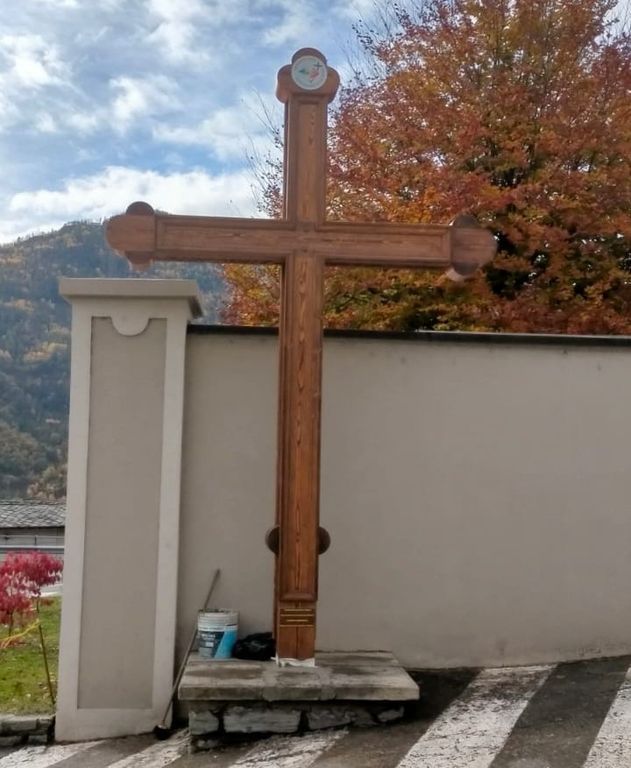 Fortemente voluta dalla comunità dei Sèn Pierolen, è stata realizzata dal falegname-artigiano Giuseppe Miret la croce lignea che da oggi, venerdì 31 ottobre, campeggia all'ingresso del cimitero di Saint-Pierre.