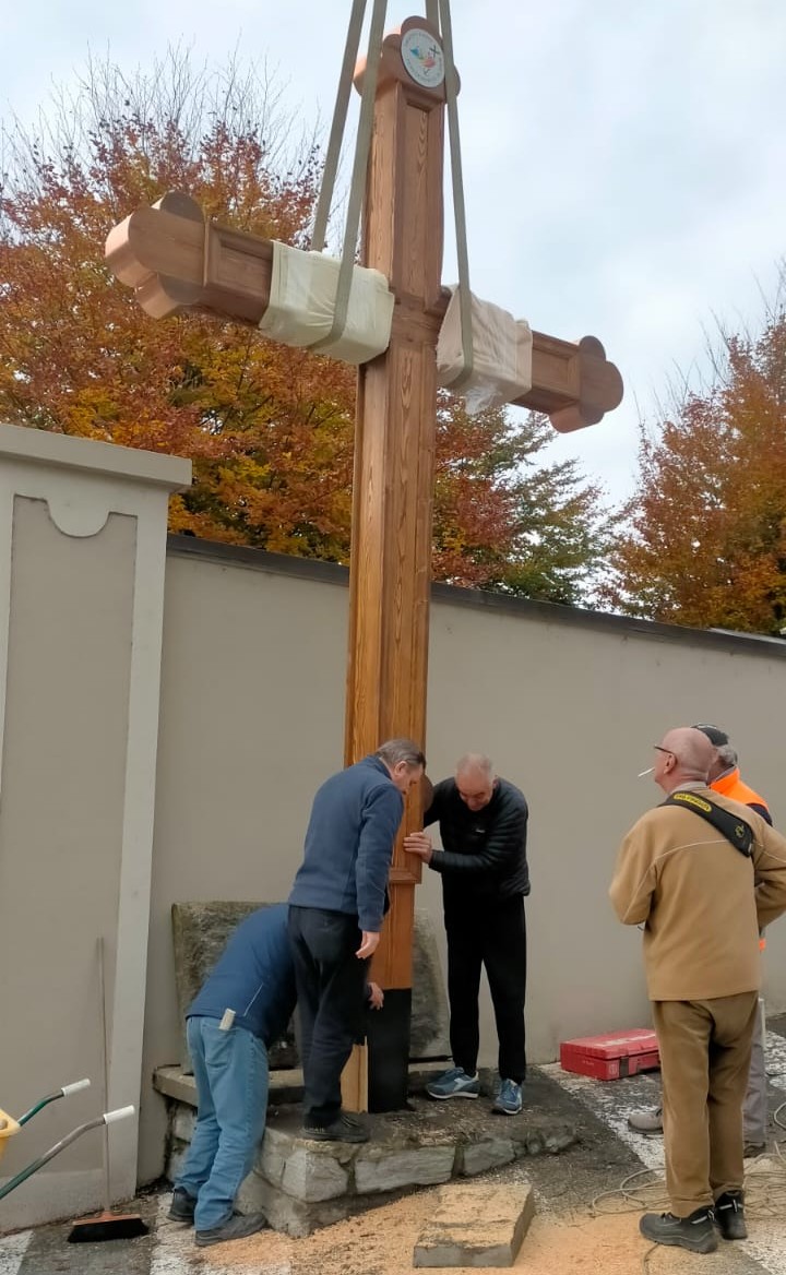 Fortemente voluta dalla comunità dei Sèn Pierolen, è stata realizzata dal falegname-artigiano Giuseppe Miret la croce lignea che da oggi, venerdì 31 ottobre, campeggia all'ingresso del cimitero di Saint-Pierre.