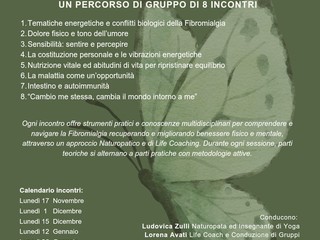 Da questa visione nasce il ciclo di incontri ideato da Lorena Avati, Life Coach e conduttrice di gruppi nella crescita personale e spirituale, e Ludovica Zulli, Naturopata e insegnante di Yoga. Un percorso strutturato in otto appuntamenti serali, che si propone di accompagnare le persone nella comprensione e nella gestione della Fibromialgia attraverso un approccio multidisciplinare e naturale.