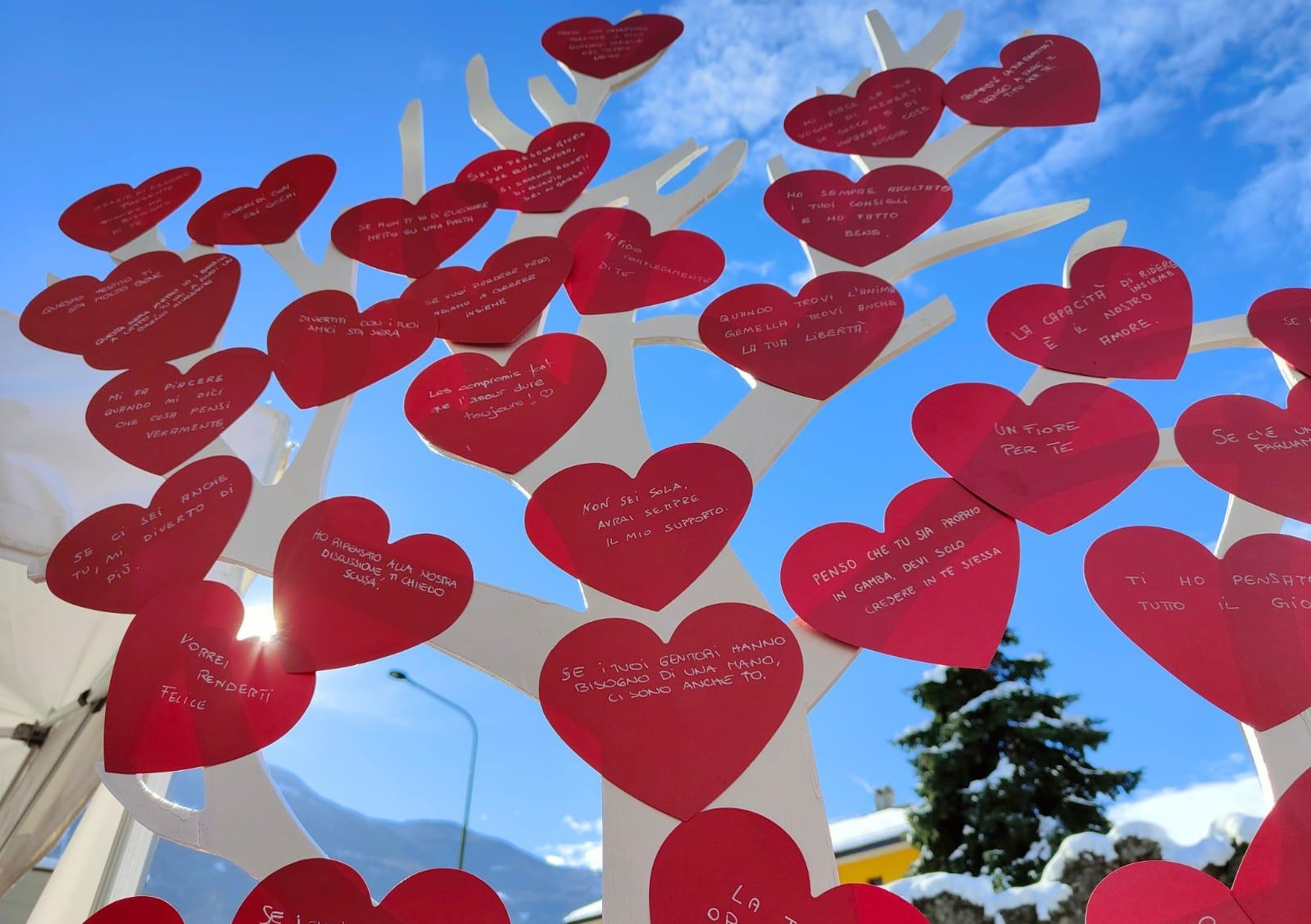 Le risposte saranno raccolte e affisse su un albero simbolico, la cui chioma rossa si arricchirà progressivamente dei contributi dei cittadini, diventando una piccola installazione collettiva dedicata alla consapevolezza.