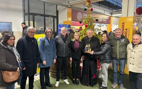 Coldiretti e Confartigianato donano al vescovo Lovignana la statuina del Presepe 2025