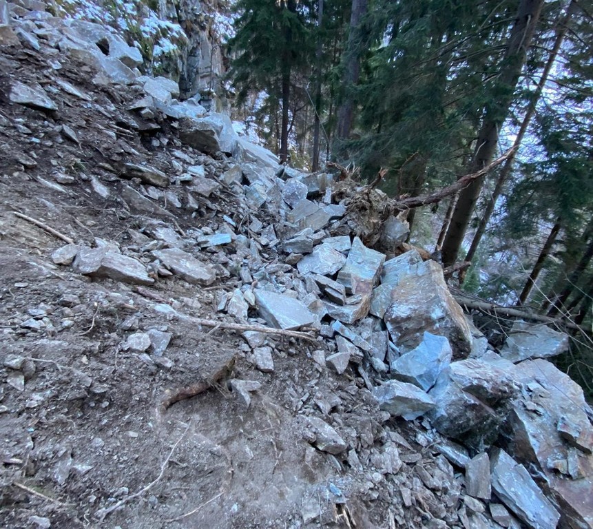 Una frana è caduta oggi domenica 28 dicembre in territorio di Champorcher, nel bosco a monte della località La Place.