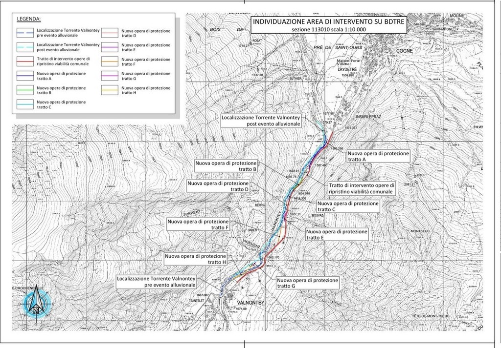 Sono inoltre previste opere di difesa spondale, differenziate in base alle velocità del torrente, mediante la realizzazione di muri in calcestruzzo armato rivestiti in pietrame, oltre agli interventi di protezione delle prese di captazione idrica, elementi fondamentali per la salvaguardia delle infrastrutture e dell’ambiente circostante.