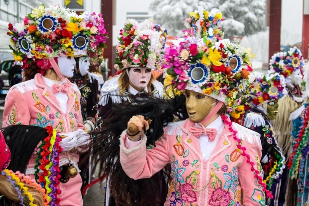 Maschere che visitano le famiglie, ballano nelle piazze e condividono cibo e vino.