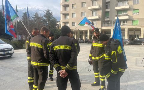 La protesta dei Vigili del fuoco valdostani a Palazzo regionale mentre l’Aula vota la riforma del Corpo VIDEOINTERVISTA