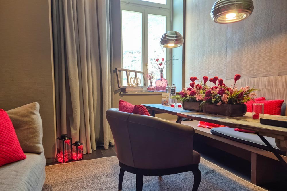 Dopo una giornata trascorsa tra natura, benessere o passeggiate nel cuore della Valle d’Aosta, la suite diventa il luogo ideale in cui rientrare e vivere un tempo sospeso, lontano dal ritmo quotidiano. Nel cuore di questa esperienza, la suite, prenotabile direttamente dal sito, si arricchisce di piccoli rituali pensati per accompagnare la coppia in un percorso di condivisione. All’arrivo un brindisi con spumante e friandises accoglie gli ospiti nella quiete della camera; la ricca colazione a buffet prolunga la dolcezza del risveglio; un aperitivo al Bar La Cheminée invita a ritagliarsi un momento di complicità davanti al fuoco.